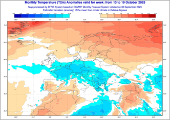 Tuttavia, la tenuta dell’alta pressione non appare garantita sul lungo termine. Le proiezioni a medio termine evidenziano un possibile cedimento del campo anticiclonico attorno a mercoledì 15 ottobre, quando una saccatura atlantica potrebbe approfondirsi verso il Mediterraneo centrale. Tale evoluzione sinottica, se confermata, determinerebbe l’ingresso di masse d’aria più fresche e instabili di origine oceanica, con conseguente ritorno di precipitazioni, a iniziare dalle regioni settentrionali, in successiva estensione verso il Centro-Sud. Un raffreddamento generalizzato accompagnerebbe il peggioramento, riportando le temperature su valori più conformi alla norma autunnale.
