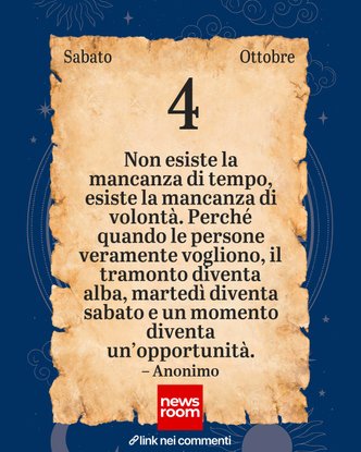 Benvenuti all’almanacco di Sabato 4 Ottobre 2025, il 277º giorno dell’anno secondo il calendario gregoriano. Mancano 88 giorni alla fine dell’anno. In questa giornata, celebriamo San Francesco d’Assisi, patrono d’Italia, e riflettiamo sul proverbio del mese: “Ottobre piovoso, campo prosperoso”. Questo almanacco offre uno sguardo agli eventi storici significativi accaduti il 4 ottobre, ai compleanni di personalità illustri nate in questa data, e conclude con un aforisma ispiratore per la giornata.