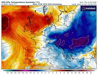 Tra il 15 e il 16 ottobre una massa d’aria decisamente fredda, di matrice artica-continentale, irromperà sull’Europa orientale, determinando un crollo termico significativo su vaste aree comprese tra la Russia europea, l’Ucraina, la Bielorussia e i Balcani settentrionali. Secondo l’ultima emissione del modello ECMWF, l’onda fredda potrebbe marginalmente interessare anche l’Italia, seppur in misura molto attenuata rispetto alle proiezioni delle precedenti 24 ore. In particolare, è previsto un modesto sfondamento della saccatura fredda sul Nord Italia, con un calo delle temperature compreso tra i 4 e i 5°C a tutte le quote, valori che verranno avvertiti soprattutto tra il Nord-Est e il medio versante adriatico.