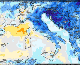 Tuttavia, già da lunedì 13 il contesto sinottico subirà una netta evoluzione. Un flusso d’aria fredda di origine artico-continentale inizierà a scendere verso l’Europa centro-orientale, raggiungendo progressivamente anche l’Italia, a partire dalle regioni adriatiche e settentrionali. Il calo termico sarà marcato e generalizzato, con valori che si porteranno rapidamente al di sotto delle medie stagionali. Questo afflusso freddo andrà ad interagire con masse d’aria più calde e umide di provenienza afro-mediterranea, presenti soprattutto al Sud, innescando un aumento dell’instabilità atmosferica.