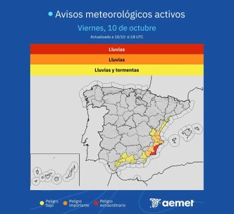 Il quadro meteorologico rimarrà instabile almeno fino a domenica, con una graduale attenuazione dei fenomeni solo a partire dalla tarda serata di sabato, in coincidenza con lo spostamento verso Est del nucleo principale della DANA. Per restare sempre aggiornato scarica GRATIS la nostra App!