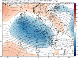 La svolta definitiva arriverà tra lunedì 20 e martedì 21 ottobre, quando il Mediterraneo centrale verrà interessato da una vasta circolazione ciclonica di origine atlantica. Una saccatura in discesa dal Golfo di Biscaglia darà origine a una depressione secondaria in traslazione verso la penisola italiana, accompagnata da un sistema frontale ben organizzato. Si prevede il ritorno di precipitazioni diffuse, localmente abbondanti, con accumuli significativi sul Nord Italia e lungo il versante tirrenico centro-settentrionale. Contestualmente, la quota neve sulle Alpi si abbasserà fin verso i 2000-2200 metri, con primi accumuli significativi sulle creste di confine e nei settori centro-occidentali.