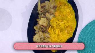 - Servi il tacchino alla curcuma accompagnato dalle patate rosolate: un piatto ricco di sapore e al contempo equilibrato, perfetto per ogni occasione.