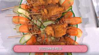 Gli Stuzzichini di pollo sono un secondo piatto irresistibile ideato dalla cuoca siciliana Giusina Battaglia. Si tratta di un petto di pollo farcito con prosciutto cotto e provola, panato e fritto fino a ottenere una croccantezza perfetta. Il piatto è accompagnato da un fresco contorno di verdure crude – zucchine e carote – arricchito da una deliziosa glassa di aceto balsamico, noci croccanti e un tocco di miele, che dona un equilibrio dolce e deciso. Un’idea elegante e sfiziosa, perfetta per stupire i vostri ospiti durante un pranzo o una cena speciale.