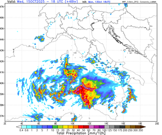 Una vasta e strutturata area depressionaria di origine atlantica è in rapido approfondimento sul bacino occidentale del Mediterraneo e, secondo gli ultimi modelli previsionali, si avvia a divenire una delle più intense degli ultimi mesi. Il ciclone, alimentato dall’ingresso di aria fredda in discesa dal Nord Europa e dal contrasto termico con le acque superficiali del Mare Nostrum – ancora insolitamente calde per il periodo – andrà a generare condizioni atmosferiche potenzialmente critiche a partire da mercoledì 15 ottobre. Si attiverà una dinamica esplosiva in grado di produrre fenomeni meteorologici di forte impatto, con elevato rischio idrogeologico su diverse aree del Paese.