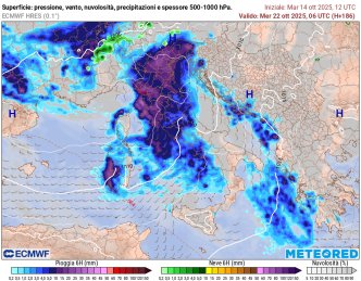 Il fronte atlantico, sospinto da un minimo depressionario in traslazione dal Golfo di Biscaglia verso le Alpi occidentali, determinerà un peggioramento significativo sulle regioni del Nord e sul versante tirrenico centro-meridionale. Le prime piogge di rilievo sono attese sul Nord-Ovest, dopo una lunga fase asciutta, con fenomeni in intensificazione nel corso della giornata di lunedì su Liguria, alta Lombardia, Toscana e Lazio. In serata e nella notte su mercoledì 22, le precipitazioni si estenderanno rapidamente anche al resto del Centro e alla Campania, risultando localmente abbondanti, in particolare lungo i litorali tirrenici, dove non si esclude lo sviluppo di temporali di moderata intensità.