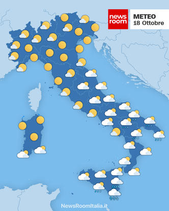 Italia – La giornata di Sabato 18 Ottobre 2025 vede un campo di alta pressione dominare gran parte della Penisola, con valori pressori elevati che garantiscono condizioni generalmente stabili e soleggiate sul Centro-Nord. Tuttavia, una perturbazione di origine africana si avvicina al Sud, determinando un graduale aumento della nuvolosità e le prime piogge serali in Sicilia e Calabria. Le temperature massime si mantengono miti per il periodo, oscillando tra i 14 e i 23 gradi, mentre i venti rimangono deboli e i mari poco mossi.