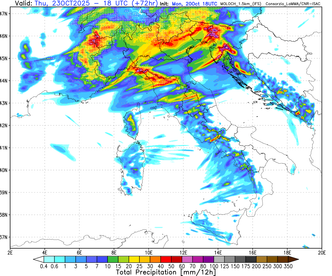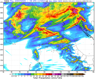 Il peggioramento prenderà avvio fin dalle prime ore del mattino a partire dal Nord-Ovest, dove sono attesi rovesci diffusi, localmente a carattere temporalesco, specie tra Liguria e Piemonte. Secondo le simulazioni del modello europeo ECMWF, le precipitazioni più intense si collocheranno inizialmente tra il basso Piemonte, il Ponente ligure e l’alta Lombardia occidentale, con una rapida estensione verso Est nel corso della giornata.