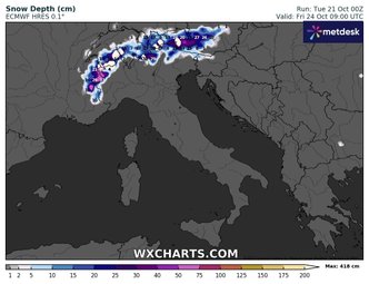 Importante anche il quadro nivologico: le prime nevicate si verificheranno sulle Alpi oltre i 1700-1900 metri, ma con l’ingresso della massa d’aria più fredda, il limite delle nevicate è previsto in calo fino a 1400-1500 metri, in particolare lungo i settori di confine e sui versanti esteri delle Alpi centro-orientali. Le precipitazioni nevose potranno proseguire fino a sera, grazie all’addensamento dell’umidità sui rilievi alpini, indotto dalla dinamica post-frontale.