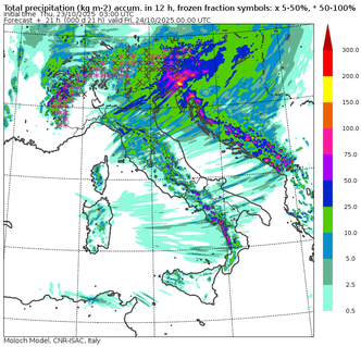 Sotto l’influenza diretta del sistema ciclonico, le regioni settentrionali hanno sperimentato un netto abbassamento delle temperature e l’instaurarsi di condizioni di instabilità marcata. Temporali di forte intensità, associati a frequente attività elettrica, hanno colpito in particolare la Liguria di Levante, l’alta Toscana e l’Emilia occidentale. Su queste aree si sono attivati sistemi temporaleschi stazionari, cosiddetti autorigeneranti, capaci di scaricare in poche ore cumulate pluviometriche fino a 250 mm, equivalenti alla precipitazione media di tre mesi. Tali volumi d’acqua aumentano sensibilmente il rischio idrogeologico, con potenziale per frane, esondazioni e allagamenti localizzati.