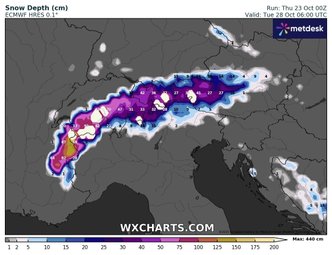 Tra lunedì 27 e martedì 28 ottobre, due impulsi perturbati di origine atlantica interesseranno il settore alpino di confine, dando luogo a un episodio di maltempo tardo-autunnale a carattere nevoso, con particolare coinvolgimento dei versanti settentrionali e delle alte valli esposte a nord. Il contesto sarà quello di un tempo dinamico, condizionato dal passaggio di un primo fronte freddo seguito, a breve distanza, da un richiamo caldo umido, che determinerà un repentino innalzamento del limite delle nevicate.