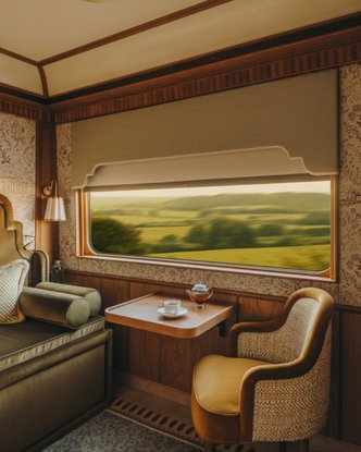 Il design degli interni del treno è opera dello studio londinese Albion Nord, in collaborazione con figure di rilievo nel panorama del design britannico come Luke Edward Hall, Mel Campion e Olly Fathers. Gli ambienti interni rispecchiano un’estetica che celebra la bellezza del paesaggio britannico attraverso l’utilizzo di materiali naturali, marmo pregiato, pezzi di antiquariato unici nel loro genere, tessuti sofisticati e accessori di design che contribuiscono complessivamente a creare un’atmosfera di eleganza contemporanea e sereno relax. Le pareti delle cabine sono state decorate con opere originali del pittore Ed Burkes e del designer tessile Adam Halls, trasformando ogni spazio in una galleria d’arte mobile. Ulteriormente, le carte da parati ispirate alle piante britanniche e alle antiche mappe geografiche fungono da discreto omaggio ai paesaggi attraversati dal convoglio, mentre gli specchi decorati con conchiglie nei bagni aggiungono dettagli di raffinatezza narrativa.