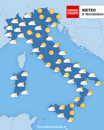 Nord: Al Nord si registrerà un aumento della nuvolosità soprattutto sul Nordovest, dove il cielo si presenterà da parzialmente nuvoloso a coperto nel corso della giornata. Le foschie saranno diffuse nelle zone di pianura, in particolare in Lombardia ed Emilia-Romagna, con pochi scampoli di sole nelle ore centrali. Le temperature minime oscilleranno tra 3 e 9 gradi, mentre le massime si attesteranno tra 12 e 20 gradi in pianura e aree prealpine. I venti saranno tendenzialmente deboli, prevalentemente da nord-est e ovest, con intensità minore rispetto alle zone occidentali.