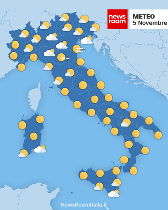 Nord: Il Nord Italia sarà interessato da un robusto campo di alta pressione che garantirà condizioni di stabilità atmosferica. Durante la mattina, le aree pianeggianti potranno essere avvolte da nebbie o foschie, talvolta persistenti, che daranno luogo a una nuvolosità irregolare e locale limitazione della visibilità. Sui rilievi alpini, invece, il cielo risulterà prevalentemente sereno o poco nuvoloso. I venti saranno deboli e provenienti dai quadranti settentrionali, con mari calmi. Le temperature massime si attesteranno tra 13 e 18°C a seconda delle località, con un clima freddo durante le ore notturne.