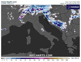 A partire dal 20-21 novembre, il fronte freddo potrebbe completare la sua transizione verso sud, estendendo l’aria artica su gran parte del territorio italiano. Le temperature scenderanno sotto la media del periodo, con valori termici più consoni all’inizio dell’inverno meteorologico che non alla seconda decade di novembre. La neve potrebbe fare la sua comparsa anche a quote relativamente basse nelle aree interne dell’Appennino e lungo il versante adriatico, dove le correnti nord-orientali potrebbero favorire rovesci nevosi localizzati.
