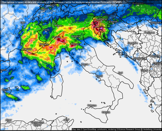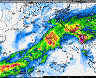 Per quanto riguarda i quantitativi pluviometrici attesi, i modelli prospettano valori decisamente sopra media su ampie porzioni del territorio. Tra Liguria di Levante, alta Toscana, Lazio, Umbria, Sardegna occidentale e Campania si stimano accumuli superiori del 20-40% rispetto alla norma del periodo, con picchi fino al +60/70% sulle zone più esposte tra Levante ligure e Apuane. Anche le Alpi centro-orientali, in particolare il Veneto e il Friuli Venezia Giulia, riceveranno precipitazioni superiori alla media. Piogge prossime alla norma, o lievemente inferiori, sono previste sulle regioni ioniche, su parte della Sicilia orientale, sulla Puglia centrale, sull’est della Sardegna e sulla pianura piemontese.