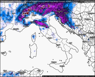 In particolare, sul basso Piemonte e sull’Emilia occidentale, il transito di nuclei precipitativi intensi in coincidenza con il cuscinetto freddo al suolo potrà determinare “nevicate da rovesciamento”, un fenomeno tipico delle irruzioni artiche che comporta il repentino collasso dell’aria fredda dagli strati superiori verso il suolo, favorendo nevicate bagnate e pesanti fino alla bassa collina o addirittura in pianura. Questo tipo di fenomeno, seppur scenografico, può creare problemi significativi alla circolazione stradale per via dell’intensità delle precipitazioni e della rapidità con cui la neve si accumula al suolo.