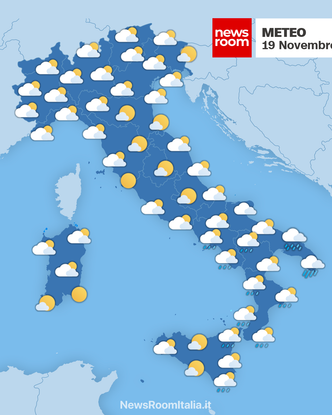 Italia – Nel corso della giornata di mercoledì 19 Novembre, una circolazione a bassa pressione interesserà principalmente le regioni meridionali, favorendo condizioni di tempo instabile. La pressione rimane medio-alta al Nord e sul Centro, garantendo tempo asciutto con cielo poco nuvoloso. Le temperature massime varieranno dai 9-10°C al Nord, fino ai 18-21°C tra Centro-Sud e isole maggiori, mentre i venti saranno generalmente deboli, in prevalenza settentrionali ma con direzioni meridionali al Sud. I mari da poco mossi a mossi nei settori meridionali.