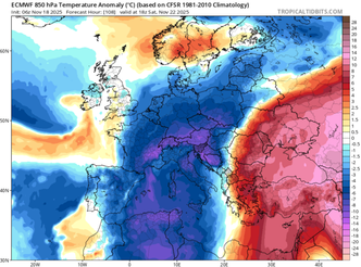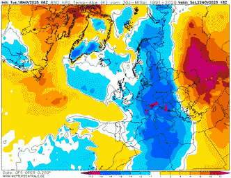 Il processo di formazione di questo ciclone artico rappresenta un evento di particolare rilevanza per il mese di novembre. L’aria fredda, entrando nel Mediterraneo, alimenterà un minimo di bassa pressione che si posizionerà tra il Mar Ligure e il Tirreno settentrionale, per poi risalire verso l’Italia settentrionale tra giovedì 20 e sabato 22 novembre. La presenza di questo sistema depressionario, in un contesto barico altamente dinamico, potrebbe innescare un’intensa ciclogenesi mediterranea, con precipitazioni diffuse e localmente abbondanti, in particolare sulle regioni centro-settentrionali.