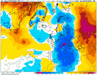 Il freddo penetrerà profondamente anche al Sud, con un drastico calo termico atteso da sabato 22 novembre. Le temperature si porteranno su valori tipici di gennaio: attese massime di soli 6–8°C a Napoli, Bari e Potenza, mentre a Palermo e Cagliari si prevedono valori diurni inferiori ai 12°C. L’intero bacino del Mediterraneo sarà coinvolto dall’irruzione fredda, con anomalie termiche estreme anche nel Nord Africa: in Algeria e Tunisia si registreranno punte fino a -10°C rispetto alle medie del periodo.