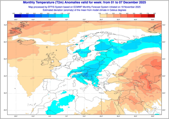 Guardando oltre, gennaio 2026 potrebbe mantenere uno schema atmosferico simile, seppur con una parziale attenuazione dell’attività perturbata rispetto a dicembre. I modelli stagionali continuano a indicare la presenza di un’anomalia barica negativa sul Canada orientale e sull’Atlantico settentrionale, che supporterebbe un flusso nordoccidentale sull’Europa, capace di portare ancora fasi fredde, seppur alternate a momenti più stabili. Solo nel corso di febbraio 2026 si intravedono segnali di una possibile compattazione del Vortice Polare, con graduale ritorno delle masse d’aria fredda verso le alte latitudini e un possibile rialzo termico soprattutto sull’Europa occidentale.