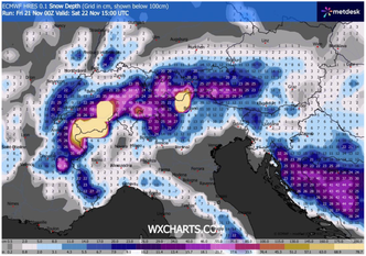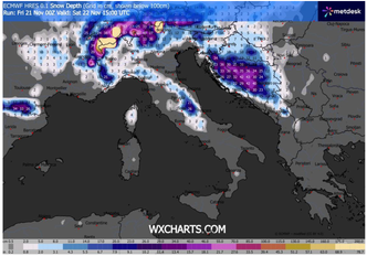 Sulla Liguria si attendono piogge intense, con cumulate localmente superiori ai 70-90 mm in 24 ore, specialmente tra Genovese, Savonese interno e Tigullio. Contestualmente, l’irruzione di aria fredda da nordest in ingresso dalla Valle del Rodano e attraverso il Cuneese determinerà un rapido abbassamento della quota neve: sul Piemonte e sulla Lombardia occidentale si prevedono nevicate fino in pianura, con accumuli significativi già entro la mattinata di sabato. Nelle aree comprese tra Torino, Cuneo, Biella, Novara e Vercelli, gli accumuli potrebbero superare localmente i 10–15 cm, con valori inferiori ma comunque rilevanti su parte della bassa pianura lombarda, in particolare tra Pavese e Lodigiano.
