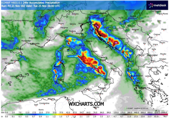 Una nuova fase di maltempo è pronta a colpire l’Italia a partire da lunedì 24 novembre, con un’intensificazione attesa nella giornata di martedì 25, quando un vortice ciclonico in formazione sul Mediterraneo centrale tenderà ad approfondirsi rapidamente, influenzando in modo deciso le condizioni atmosferiche su buona parte della Penisola. Il minimo depressionario, secondo le proiezioni modellistiche attuali, si collocherà tra il Mar Tirreno centrale e l’Adriatico, andando ad interagire con masse d’aria instabili sia in quota sia al suolo, dando origine a un quadro meteorologico perturbato, con precipitazioni diffuse, temporali localmente intensi, forti venti e nevicate anche abbondanti sui rilievi alpini.