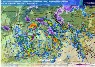 Nel corso di questo Sabato 22 Novembre, le condizioni meteorologiche si presenteranno ancora instabili, seppure con tendenza a un graduale miglioramento, specie al Nord. Nelle prime ore del mattino, residui fenomeni insisteranno sull’Emilia orientale e sulla Romagna, dove sono attese nevicate a partire dai 300-400 metri, localmente anche più in basso. Sulla Liguria di Ponente non si escludono deboli piogge residue, mentre sul basso Piemonte potranno verificarsi brevi nevicate fino in pianura, specie nelle aree più interne e riparate. Dal pomeriggio, una rotazione delle correnti e una parziale rimonta anticiclonica favoriranno l’ingresso di ampie schiarite, dapprima sul Nordovest e poi anche sul resto del Settentrione, dove però le temperature resteranno rigide, soprattutto in serata per effetto dell’inversione termica favorita dalla serenità del cielo e dall’attenuazione del vento.