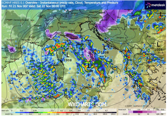 Venerdì pomeriggio le precipitazioni inizieranno a intensificarsi su Campania, Basilicata e Calabria tirrenica, con accumuli anche localmente consistenti, mentre piogge sparse raggiungeranno Puglia e Sicilia orientale. Le regioni centrali, dopo una mattinata con schiarite ingannevoli, vedranno un netto peggioramento a partire dal pomeriggio: sono attesi rovesci diffusi e un ritorno della neve lungo la dorsale appenninica, con limite in discesa fino ai 700-1000 metri. Entro sera, anche i rilievi interni della Sardegna potrebbero vedere fiocchi bianchi a partire dai 600-700 metri.