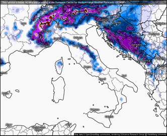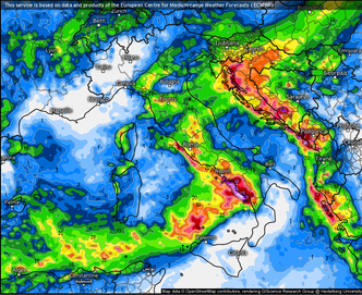 Martedì 25 novembre la situazione si complica ulteriormente con la formazione di un minimo depressionario al suolo centrato sulle regioni centrali italiane. Il ciclone, alimentato da un continuo afflusso di aria umida sud-occidentale, guiderà una nuova serie di fronti instabili, i quali andranno a colpire duramente soprattutto l’Emilia Romagna, il Triveneto e successivamente il Centro-Sud. Le precipitazioni risulteranno intense, persistenti e localmente a carattere temporalesco su Lazio interno, Toscana meridionale e Campania, dove si temono accumuli pluviometrici significativi che potrebbero causare locali criticità idrogeologiche.