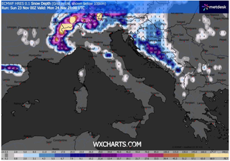 Dal punto di vista nivologico, la presenza di un cuscino freddo nei bassi strati permetterà alla neve di fare la sua comparsa anche a quote relativamente basse sul Nord Italia, in special modo tra Lombardia, Veneto e Trentino Alto Adige, dove non si escludono fioccate nei fondovalle alpini. Tuttavia, si tratterà di fenomeni deboli e di breve durata, con quota neve in rapido rialzo nel corso del pomeriggio-sera di lunedì, a causa della progressiva ingerenza di aria più mite. Sulle Alpi la neve si concentrerà oltre i 1000-1200 metri, mentre sull’Appennino centrale e meridionale i fiocchi cadranno inizialmente solo sulle cime più alte, con un abbassamento della quota neve previsto tra mercoledì e giovedì, pur senza sconfinare in collina.