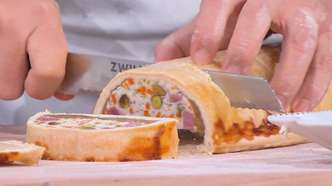 La Terrina di prosciutto è un antipasto raffinato e saporito, perfetto per le occasioni speciali e le feste. Proposto dallo chef Daniele Persegani, questo piatto unisce una base croccante fatta in casa a un ripieno delicato di pollo, arricchito dal gusto intenso del prosciutto cotto e dalla croccantezza dei pistacchi. Un vero capolavoro di equilibrio di consistenze e sapori, da preparare in anticipo per stupire i vostri ospiti sin dal primo assaggio.