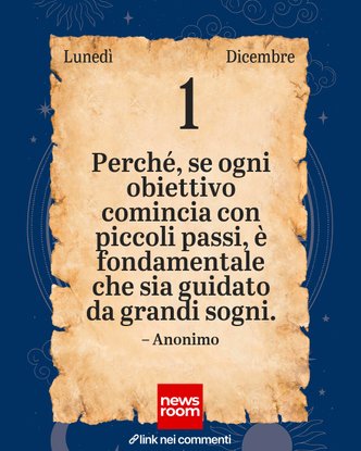 Oggi, Lunedì 1 Dicembre 2025, offre uno spaccato tra passato e futuro, tra memoria e speranza. Il ricordo degli eventi che hanno cambiato il corso della storia si affianca alle vite nate questo giorno, portatrici di creatività, ribellione, talento e impegno. Il Santo del giorno ci ricorda che l’arte del fare, quando unita alla dedizione e alla carità, lascia segni duraturi. Il proverbio e l’aforisma ci invitano a vivere questo ultimo mese dell’anno con passi misurati ma guidati da sogni audaci. La luce tenue di un’alba glaciale prelude al fine dell’anno: è tempo di guardare avanti, con piccole azioni e grandi orizzonti. Per restare sempre aggiornato scarica GRATIS la nostra App!