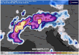 Nel frattempo, sul settore alpino, l’afflusso di aria umida e fredda determinerà nevicate copiose, in particolare sul versante occidentale. Tra Valle d’Aosta, alto Piemonte e alta Lombardia si stimano accumuli nevosi oltre i 40-60 cm al di sopra dei 1.200-1.400 metri.