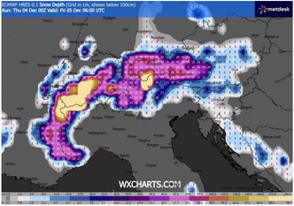 L’ingresso della saccatura atlantica determinerà precipitazioni diffuse, localmente di forte intensità, in particolare sulle regioni centrali e meridionali del versante tirrenico, mentre il Nord vedrà un tipo di maltempo più freddo e a tratti nevoso. Secondo gli ultimi dati modellistici, i primi fiocchi faranno la loro comparsa sulle Alpi occidentali già dalla giornata odierna, con una quota neve inizialmente compresa tra i 1200 e i 1400 metri. Tuttavia, tra la tarda serata e la giornata di giovedì 5 dicembre, l’ingresso di masse d’aria progressivamente più fredde favorirà un ulteriore abbassamento della quota neve, fino ai 700 metri sulle aree pedemontane del Piemonte sud-occidentale.
