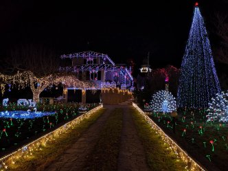 Il cuore del progetto resta il percorso illuminato, che si sviluppa per oltre un chilometro tra vicoli, piazze, cortili e aree verdi, costruendo una sorta di villaggio natalizio diffuso in cui ogni angolo del paese viene reinterpretato attraverso la luce. Le installazioni, tutte realizzate a mano, compongono un itinerario che conduce il pubblico attraverso grotte glaciali, castelli incantati, alberi luminosi e dimore degli animali del bosco, in una sequenza di scenari che alterna suggestioni nordiche e richiami alla tradizione presepiale. Il concetto di fondo è quello di una narrazione visiva continua, in cui le singole opere luminose non sono elementi isolati ma parti di un racconto complessivo che accompagna i visitatori dalle prime case del centro storico fino alle zone più periferiche coinvolte nel progetto.