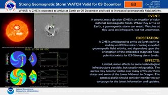 I dati raccolti dai coronografi del NOAA e dell’osservatorio solare SOHO indicano un “full-halo CME”, ovvero una CME che si espande in tutte le direzioni, tipica dei fenomeni diretti verso la Terra. Le simulazioni del Goddard Space Flight Center della NASA confermano che una parte significativa della nube è sulla traiettoria del nostro pianeta, con un impatto atteso tra le prime ore del mattino e mezzogiorno del 9 dicembre.
