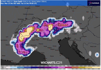 Una svolta decisa sul fronte meteorologico è attesa per martedì 16 dicembre, quando una profonda perturbazione atlantica determinerà un netto peggioramento delle condizioni atmosferiche sul Nord-Ovest italiano. Dopo un prolungato periodo di stabilità accompagnato da temperature anomale per la stagione, in particolare in quota, l’arrivo di aria fredda polare-marittima dal Nord Atlantico riporterà la neve sulle Alpi occidentali, con accumuli significativi attesi in particolare tra Piemonte e Liguria.