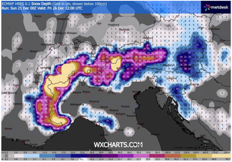 Il peggioramento non si esaurirà con la Vigilia. Secondo gli scenari più recenti, infatti, nel giorno di Natale è atteso l’ingresso di un secondo impulso perturbato pilotato da un nuovo minimo depressionario in formazione tra la Corsica e il Tirreno centrale.