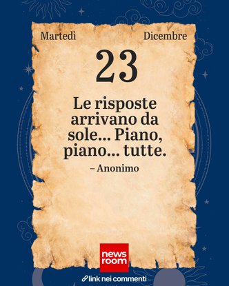 Martedì 23 dicembre si configura come giornata di profondo significato: la memoria storica si intreccia con il presente, in un equilibrio che invita alla riflessione sul tempo che passa e l’impatto delle scelte collettive. I volti noti che vi celebrano un compleanno ci ricordano come creatività, leadership e ispirazione attraversino le epoche. Il sacerdote caritatevole e gli eventi rivoluzionari instaurano un rapporto tra spiritualità, progresso e dovere civico. In attesa del Natale e della fine dell’anno, questa giornata ci sprona ad agire con pazienza e consapevolezza, fiduciosi nelle risposte che il tempo, con il suo lento misterioso fluire, saprà offrire. Per restare sempre aggiornato scarica GRATIS la nostra App!