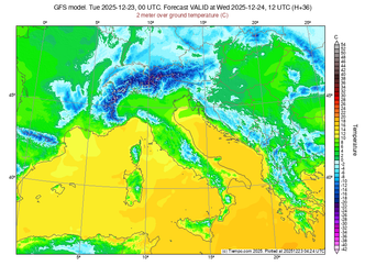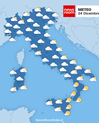 Italia – Domani, mercoledì 24 Dicembre 2025, l’Italia sarà interessata da un vortice depressionario posizionato sul Mar Tirreno che favorirà condizioni di maltempo al Nord e lungo le regioni tirreniche, con precipitazioni anche di moderata intensità e nevicate sulle catene montuose. La pressione risulterà più elevata al Sud, dove il tempo rimarrà in prevalenza stabile ma con fenomeni localizzati, soprattutto in Campania. Le temperature saranno abbastanza contenute, oscillando tra valori minimi prossimi allo zero e massimi non superiori ai 16°C nelle zone più miti.