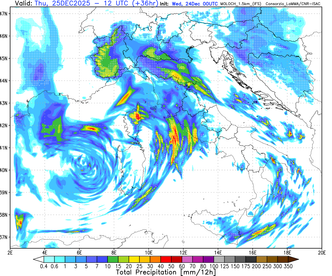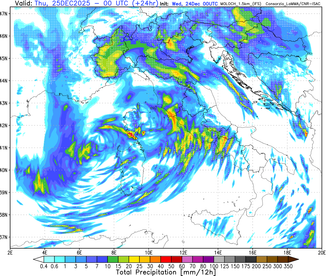 Durante la notte di Natale, il minimo ciclonico si sposterà verso le Baleari, ma il suo ampio sistema perturbato continuerà a influenzare il tempo su gran parte della Penisola. Le regioni tirreniche e l’intero comparto centro-settentrionale rimarranno ancora esposte a piogge persistenti, vento forte e condizioni instabili anche nel corso della giornata del 25 dicembre.
