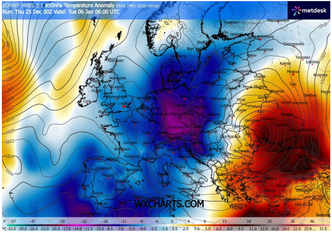 Dal punto di vista termico, il crollo delle temperature potrebbe risultare sensibile: le anomalie previste sul piano isobarico di 850 hPa (circa 1450 metri di quota) indicano valori compresi tra -8°C e -12°C su gran parte del Centro-Nord, con isoterme prossime ai -5°C fin sulle regioni meridionali. Si tratterebbe di un’ondata di freddo intensa, anche se non eccezionale, ma comunque capace di riportare condizioni pienamente invernali su tutta la Penisola dopo settimane caratterizzate da temperature spesso superiori alla norma.
