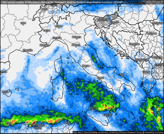 Il modello europeo (ECMWF) prevede piogge più consistenti tra la bassa Calabria e lo Stretto di Messina, con accumuli stimati tra 20 e 25 mm entro il 31 dicembre sera. Sul resto del territorio nazionale si assisterà ad un aumento della copertura nuvolosa, soprattutto al Centro e sulle regioni settentrionali, ma con fenomeni scarsi o al più deboli pioviggini sparse tra Lazio, Abruzzo, Molise, Puglia settentrionale, Basilicata interna e Sardegna occidentale.