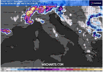 Il calo delle temperature sarà marcato sia in montagna che in pianura. Le massime faticheranno a superare i +4/+5 °C sulla Pianura Padana, mentre valori inferiori ai +7 °C sono attesi anche lungo i litorali adriatici, da Trieste fino al basso Molise. Le coste tirreniche e le Isole Maggiori godranno di qualche grado in più, ma la percezione sarà comunque rigida a causa del vento. In collina, specie tra i 400 e i 700 metri, le temperature potrebbero non superare i +3/+4 °C nelle ore centrali del giorno, delineando un contesto termico di stampo pienamente invernale. Le minime, al mattino del 31, scenderanno sotto lo zero in molte località interne del Nord e del Centro, con valori che potrebbero toccare i -4/-5 °C nelle aree più esposte al raffreddamento notturno.