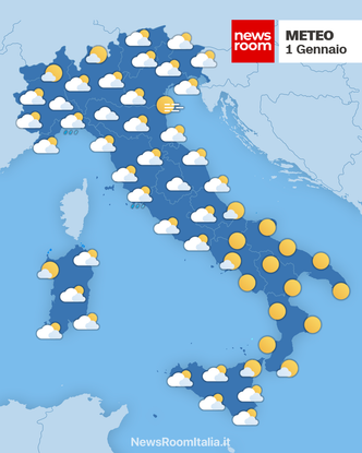 Italia – Per la giornata del primo gennaio si prevede un calo della pressione atmosferica sul territorio nazionale, con venti in rotazione dai quadranti meridionali che si andranno intensificando in serata. Questa dinamica darà origine a un progressivo aumento della nuvolosità specie al centro-nord e in Sicilia, accompagnata da piogge sparse nel pomeriggio sulle regioni tirreniche e meridionali. Le temperature massime varieranno generalmente tra 2°C e 15°C, con condizioni più miti nelle aree costiere. I mari si presenteranno mossi, in particolare con l’intensificarsi dei venti serali.