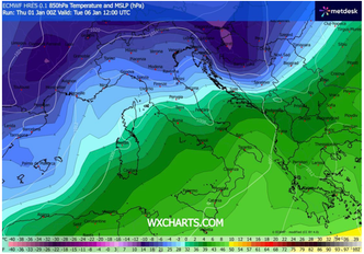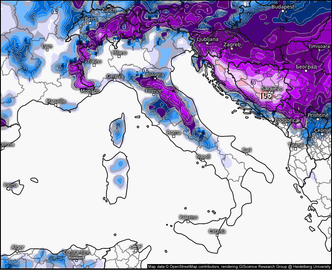 Secondo l’ultima media del modello ECMWF un minimo depressionario è atteso tra il 5 e il 6 gennaio in movimento dall’area iberica verso il bacino tirrenico settentrionale. La traiettoria prevista favorirebbe l’ingresso di un corposo sistema frontale carico di precipitazioni che, impattando su uno strato d’aria fredda già presente al suolo, potrebbe generare nevicate estese e localmente abbondanti anche su aree pianeggianti.