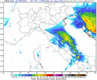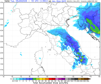 Il maltempo proseguirà anche nella giornata di mercoledì 7 gennaio, con la depressione che si sposterà gradualmente verso il basso Adriatico. Le nevicate continueranno ad interessare soprattutto le regioni adriatiche centrali e meridionali. In particolare, nuovi accumuli nevosi sono previsti sulle zone interne delle Marche (specie province di Ascoli Piceno e Fermo), dell’Abruzzo (confiocchi dai 150-300 metri su Teramano, Pescarese e Chietino), del Molise (Campobasso e colline limitrofe), della Puglia settentrionale (Gargano e Subappennino Dauno) e della Basilicata (Potentino interno e Appennino lucano). Sul Lazio orientale e sulla Campania, la neve tornerà a cadere sopra i 400-600 metri, con interessamento delle aree montane e subappenniniche.
