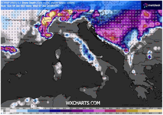 In questo contesto,le regioni centrali saranno le più esposte: nevicate anche abbondanti sono attese sull’entroterra toscano, in Umbria, sulla bassa Romagna, ma soprattutto lungo il versante adriatico collinare tra Marche, Abruzzo e Molise, dove i fiocchi potranno raggiungere le pianure interne. La traiettoria del minimo depressionario e il contrasto termico generato dallo scontro tra masse d’aria molto diverse favoriranno accumuli nevosi significativi già a partire dai 200-300 metri di quota, con possibilità di neve fino al livello del mare in caso di precipitazioni più intense, specie sul medio Adriatico.