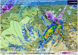 Nella giornata di mercoledì 7 gennaio si assisterà a una temporanea attenuazione dei fenomeni sulle regioni settentrionali, dove prevarranno condizioni più asciutte e stabili grazie alla presenza di un promontorio anticiclonico in rimonta da ovest. Tuttavia, sulle regioni centrali, in particolare sul versante adriatico, insisterà una circolazione depressionaria responsabile di rovesci sparsi e nevicate che, complice la massa d’aria fredda ancora presente, potranno spingersi fino a quote prossime ai fondovalle e localmente in pianura, specie tra Marche, Abruzzo e Molise.